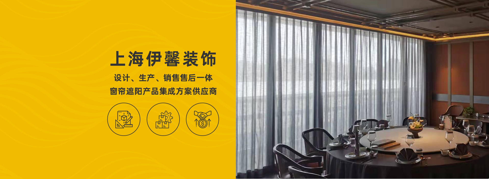 上海伊馨裝飾布藝有限公司,是設計、生產、銷售售后一體服務,窗簾遮陽產品集成方案供應商。公司總部在上海,目前在上海、珠海、深圳、青島,成都均有銷售、服務、售后人員等。